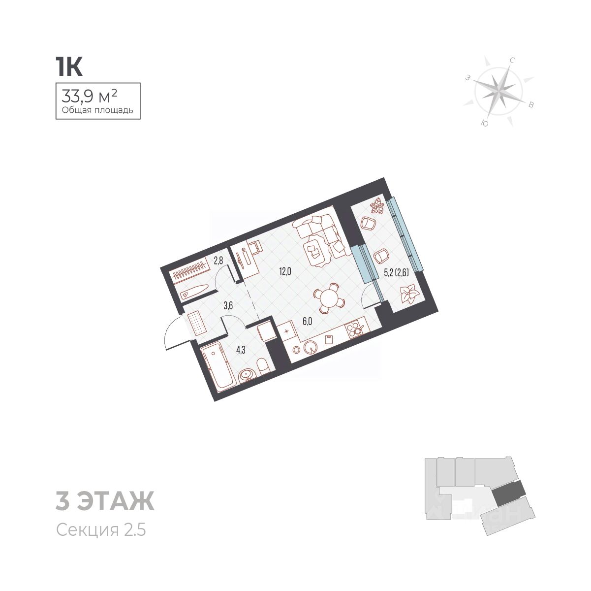 Общая площадь33,9 м²