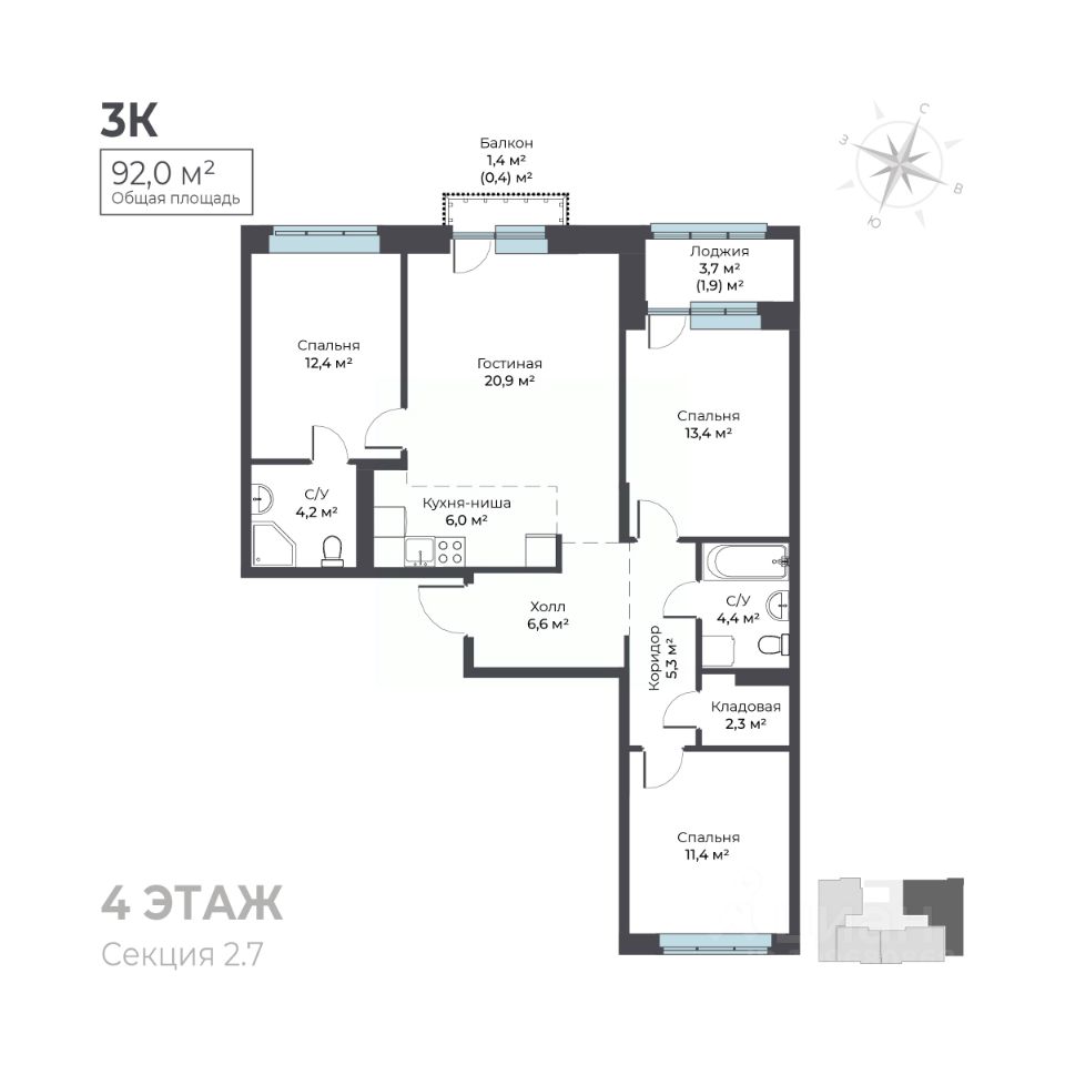 Общая площадь92 м²