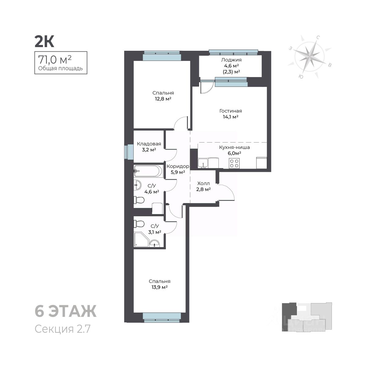 Общая площадь71 м²