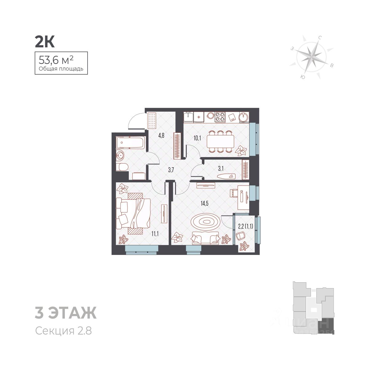 53,6 м²