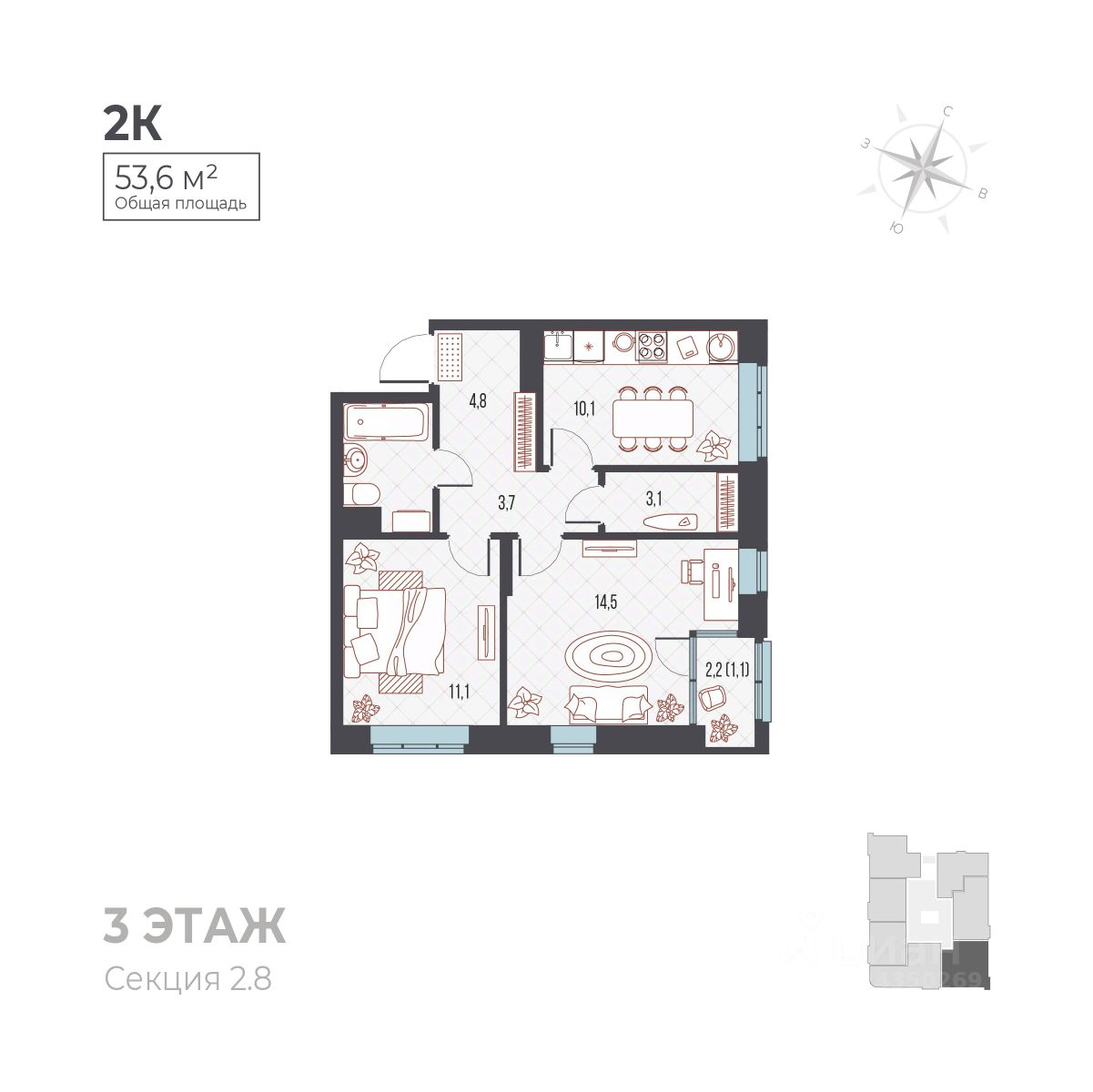 53,6 м²