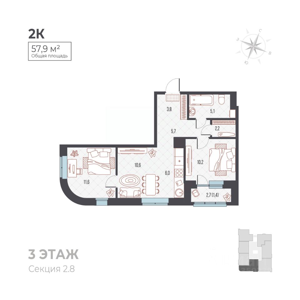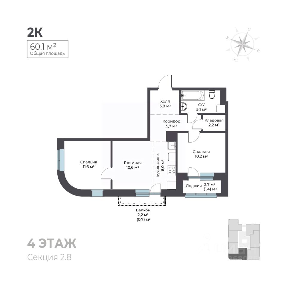 Общая площадь60,1 м²