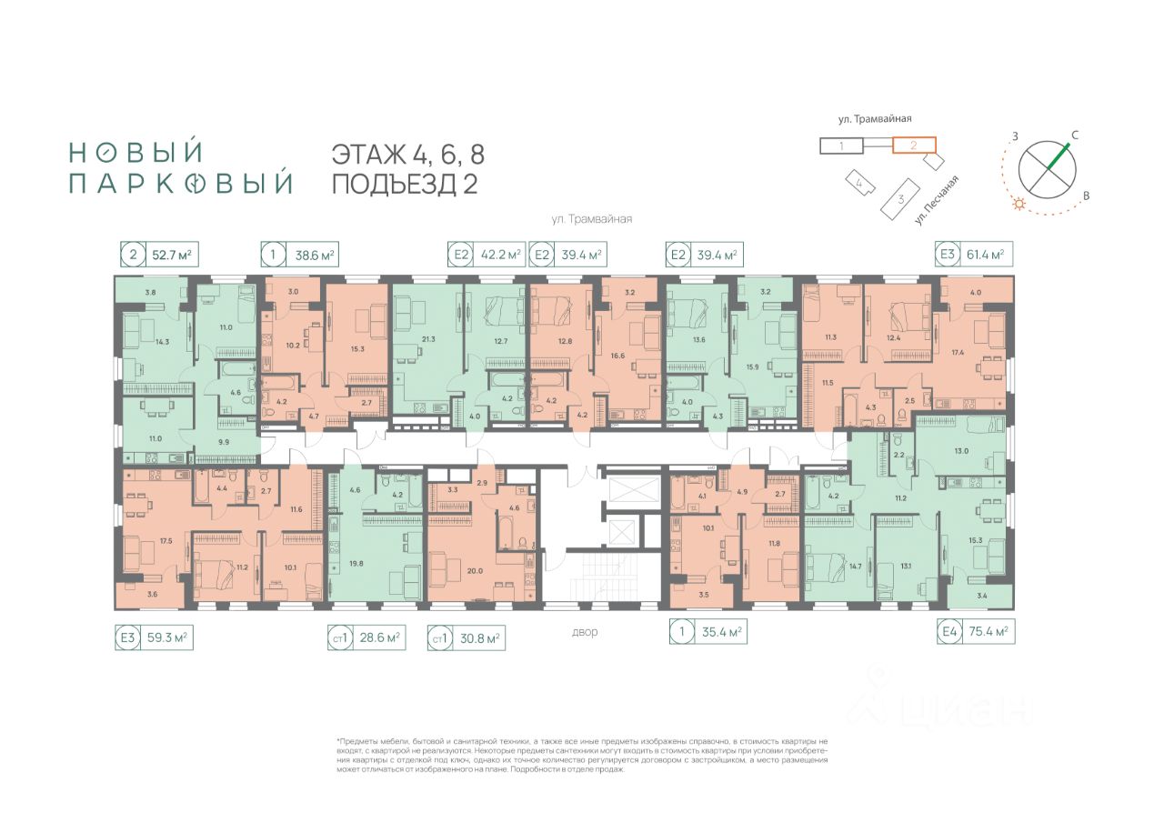Застройщик ПМД. Проектная декларация на сайте наш.дом.рф. Изображения приведены справочно, не гарантируют точного совпадения с реализованным проектом строительства Новый Парковый, ул. Трамвайная,27. Завершение строительства в 4 кв. 2025г. Подробности акций в отделе продаж. Не является публичной офертой.