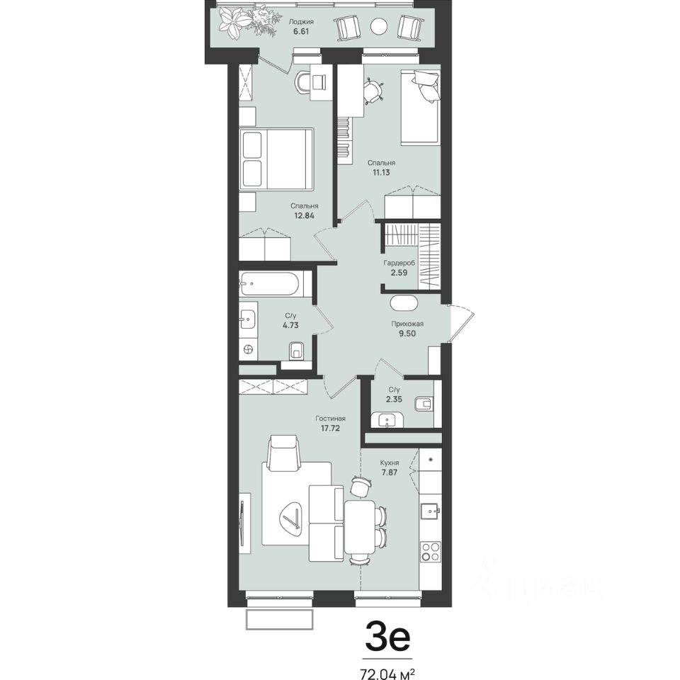 72,04 м²