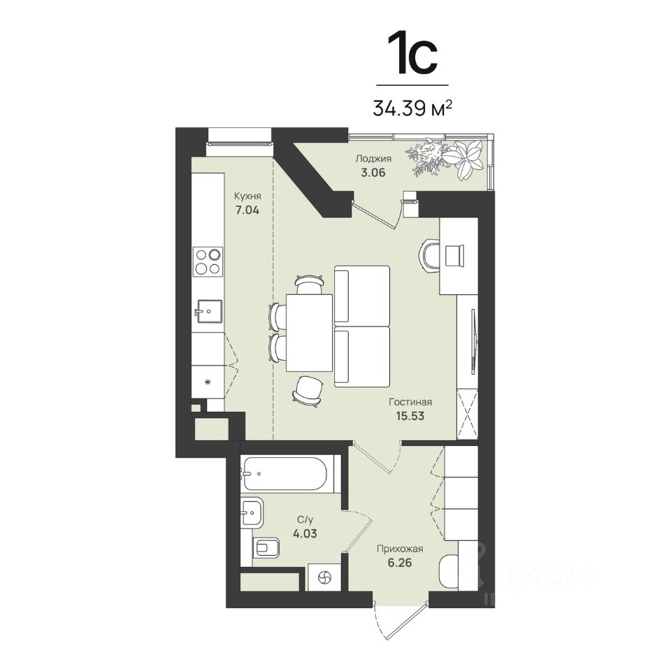 34,39 м²