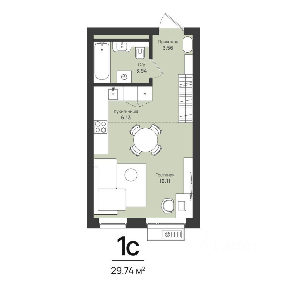 29,74 м²