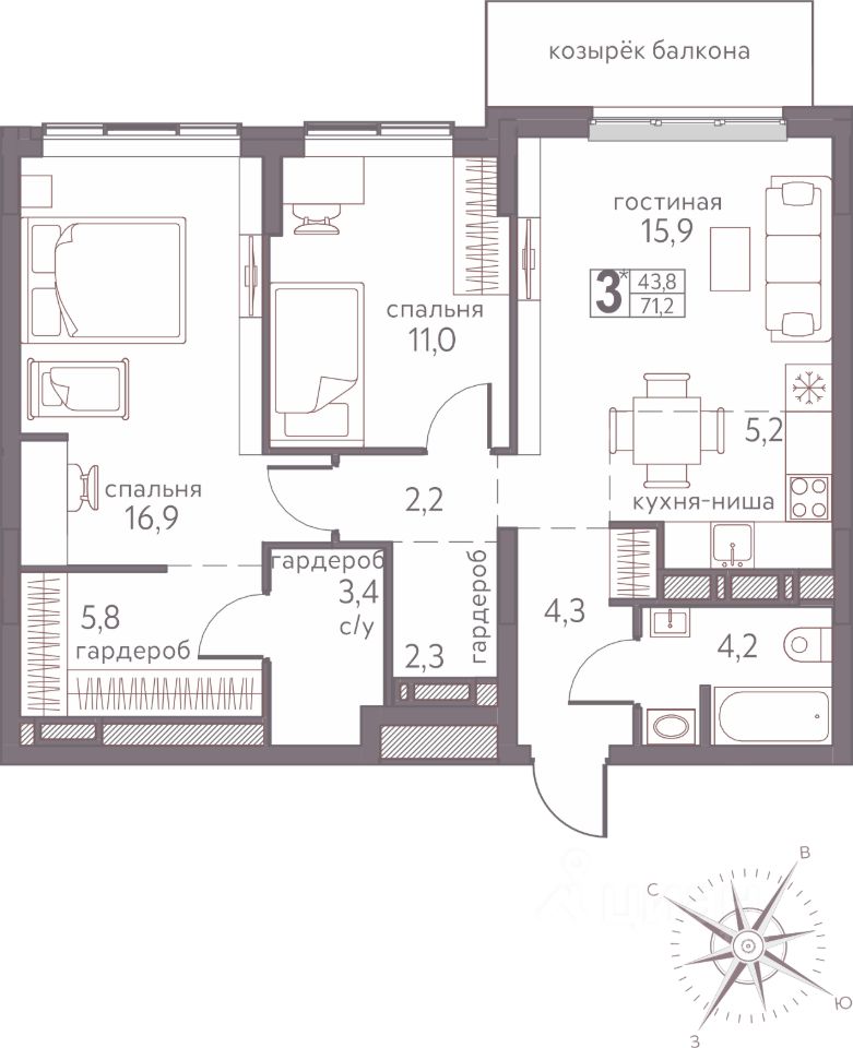 43,8 м²