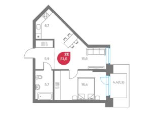 Общая площадь51,6 м²