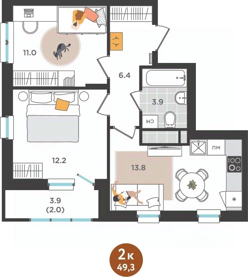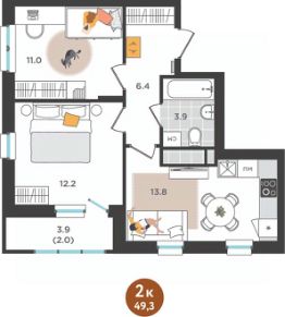 Общая площадь49,3 м²