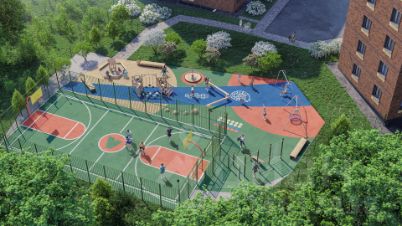 • Универсальная спортивная площадка для баскетбола и волейбола во дворе дома