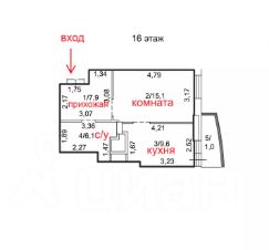 - коридор 7.9 м2 с нишей для шкафа;