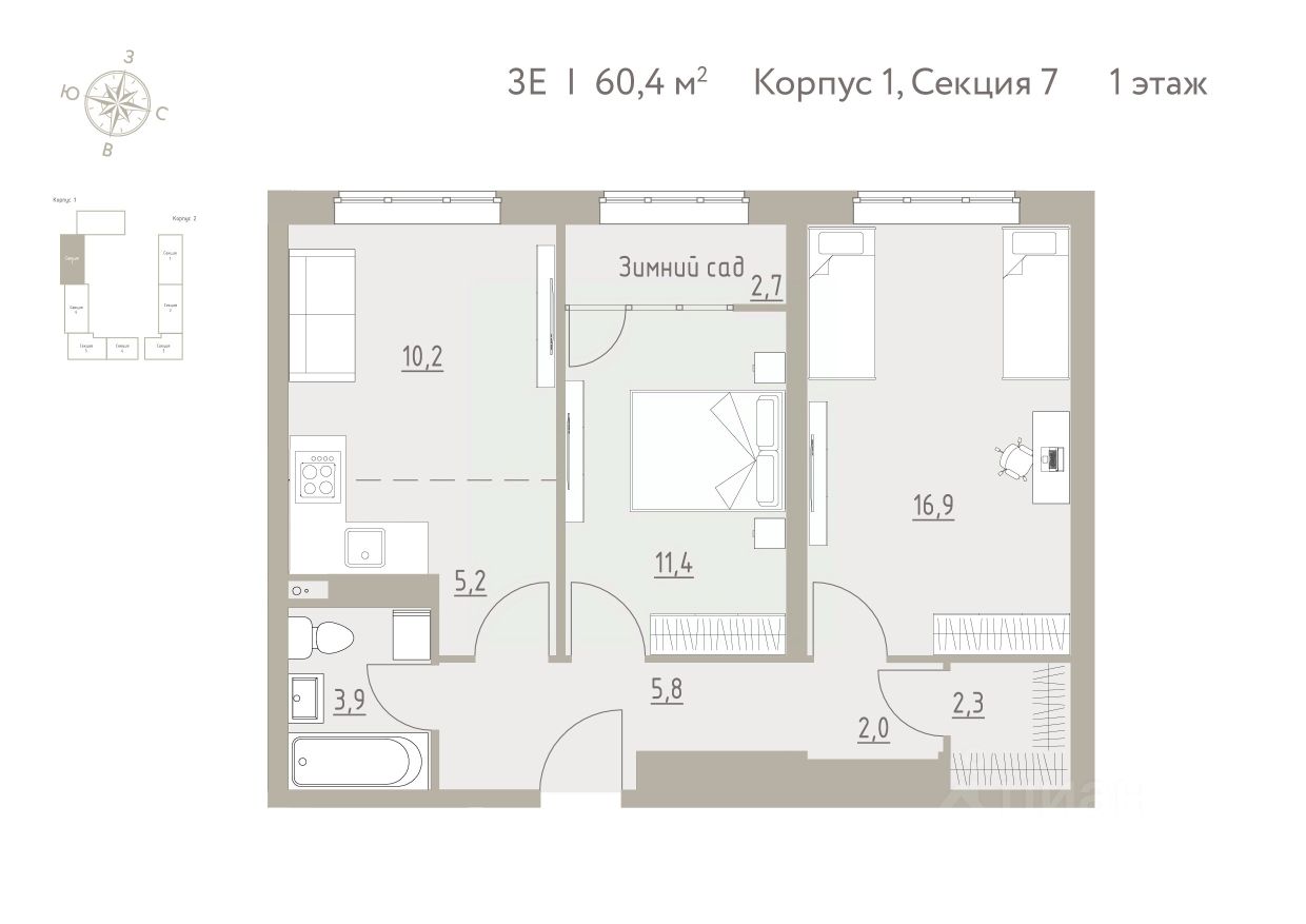 Общая площадь60,4 м²