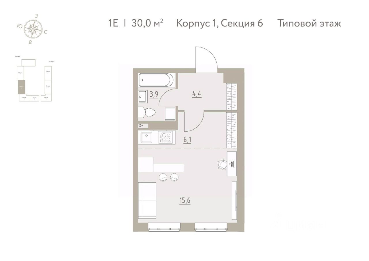 Общая площадь30 м²