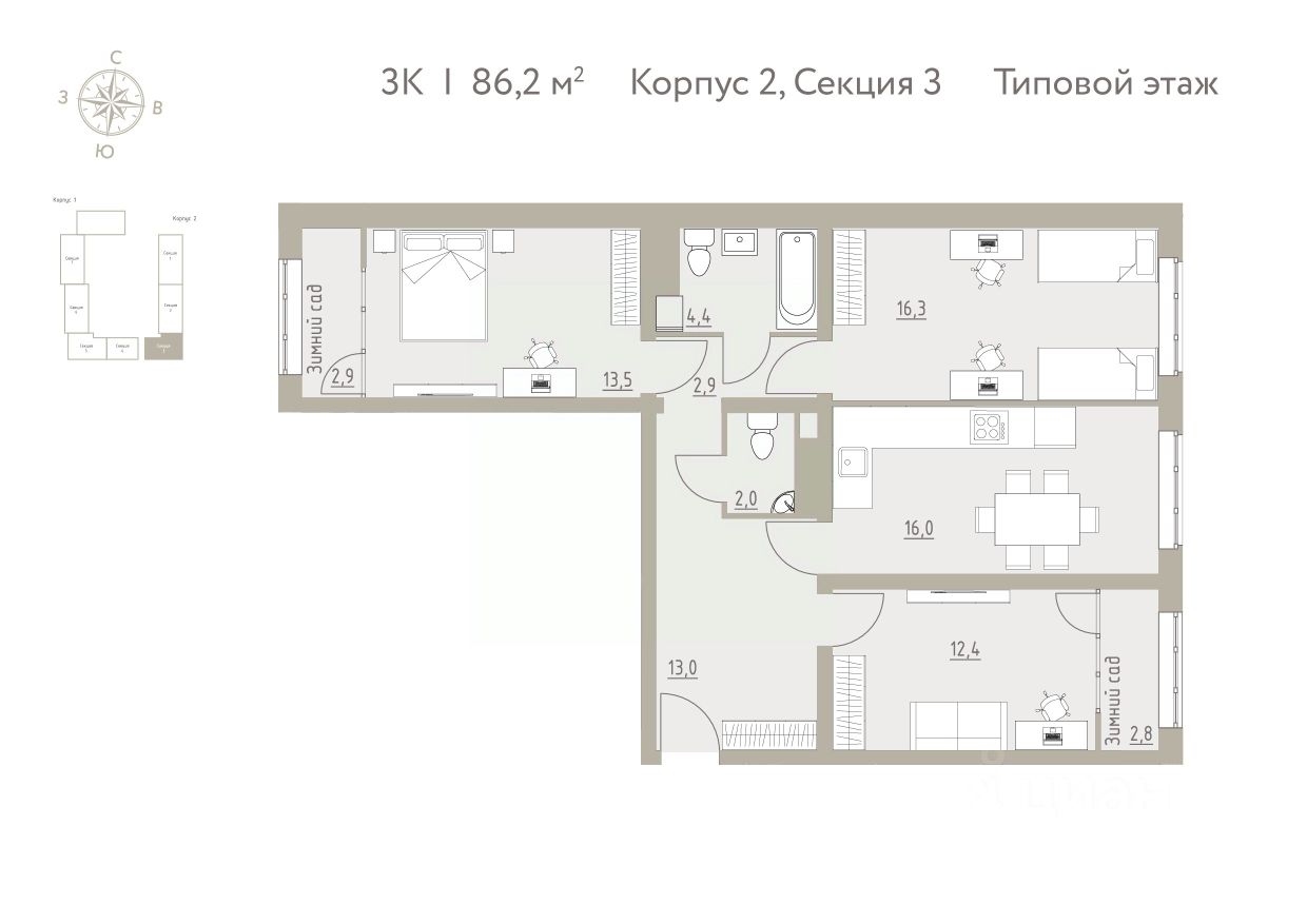 Общая площадь86,2 м²