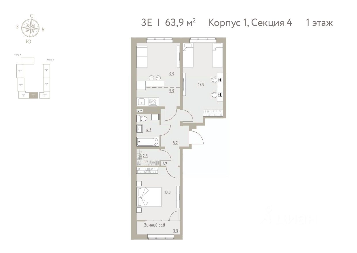 Общая площадь63,9 м²