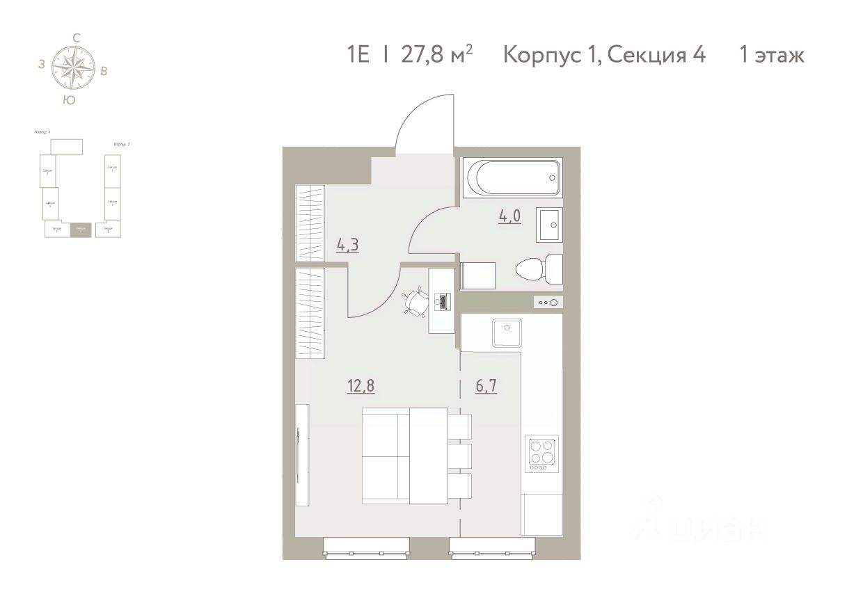 Общая площадь27,8 м²