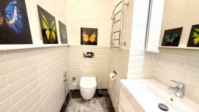 общей площадью- 102 кв.м., кухня- гостиная 30,15 кв.м., комнаты- 16.77, 17.46, 12.7, два сан. узел.