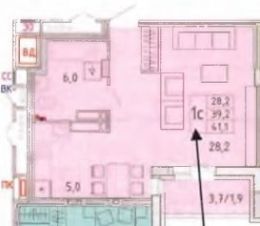 Общая площадь квартиры 39 кв.м.