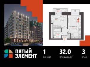 Продается 1-комнатная квартира в развитом районе Перми, площадью 32.00 кв. м. Квартира находится в новом жилом комплексе "Пятый Элемент" от федерального застройщика "Железно".