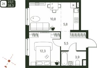 38,3 м²