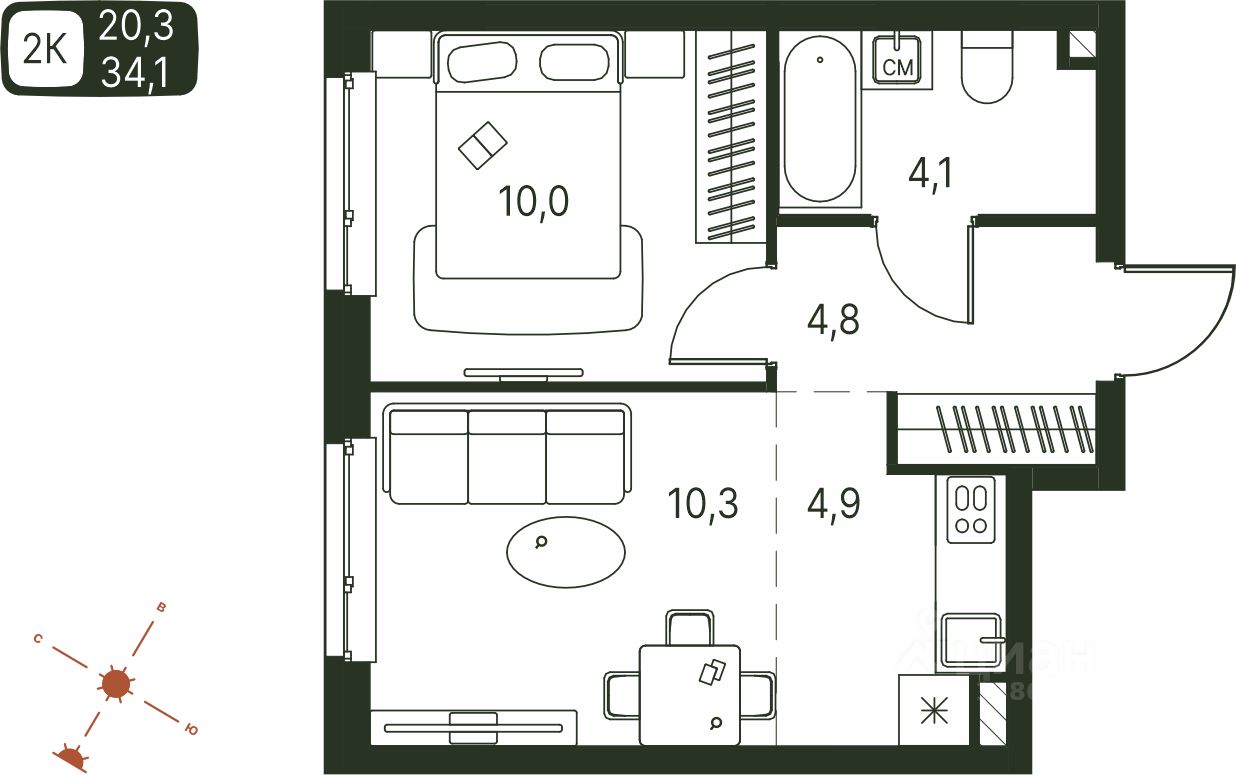 34,1 м²