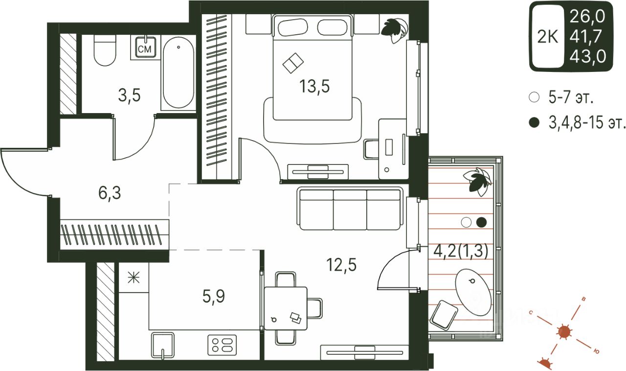 Продаётся студия в строящемся доме (Серебристая, 1), срок сдачи: IV-кв. 2027, общей площадью 43 кв.м., на 8 этаже. Теплые кварталы "Погода" — это новый грандиозный проект от создателя Спортивного микрорайона "Ива", федерального застройщика "Девелопмент-Юг" .