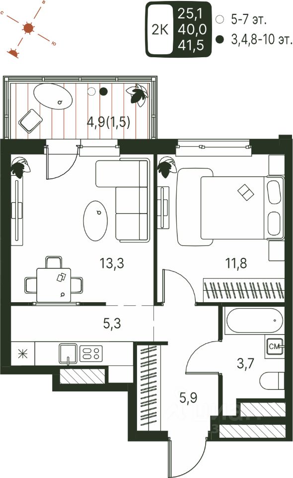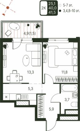 41,5 м²