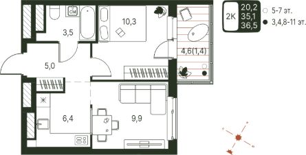 36,5 м²