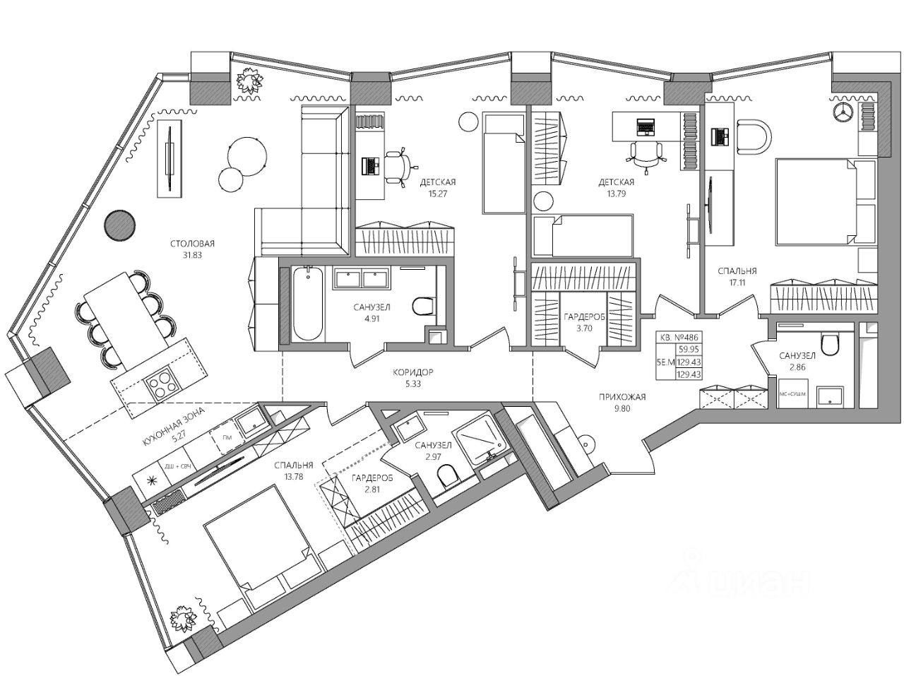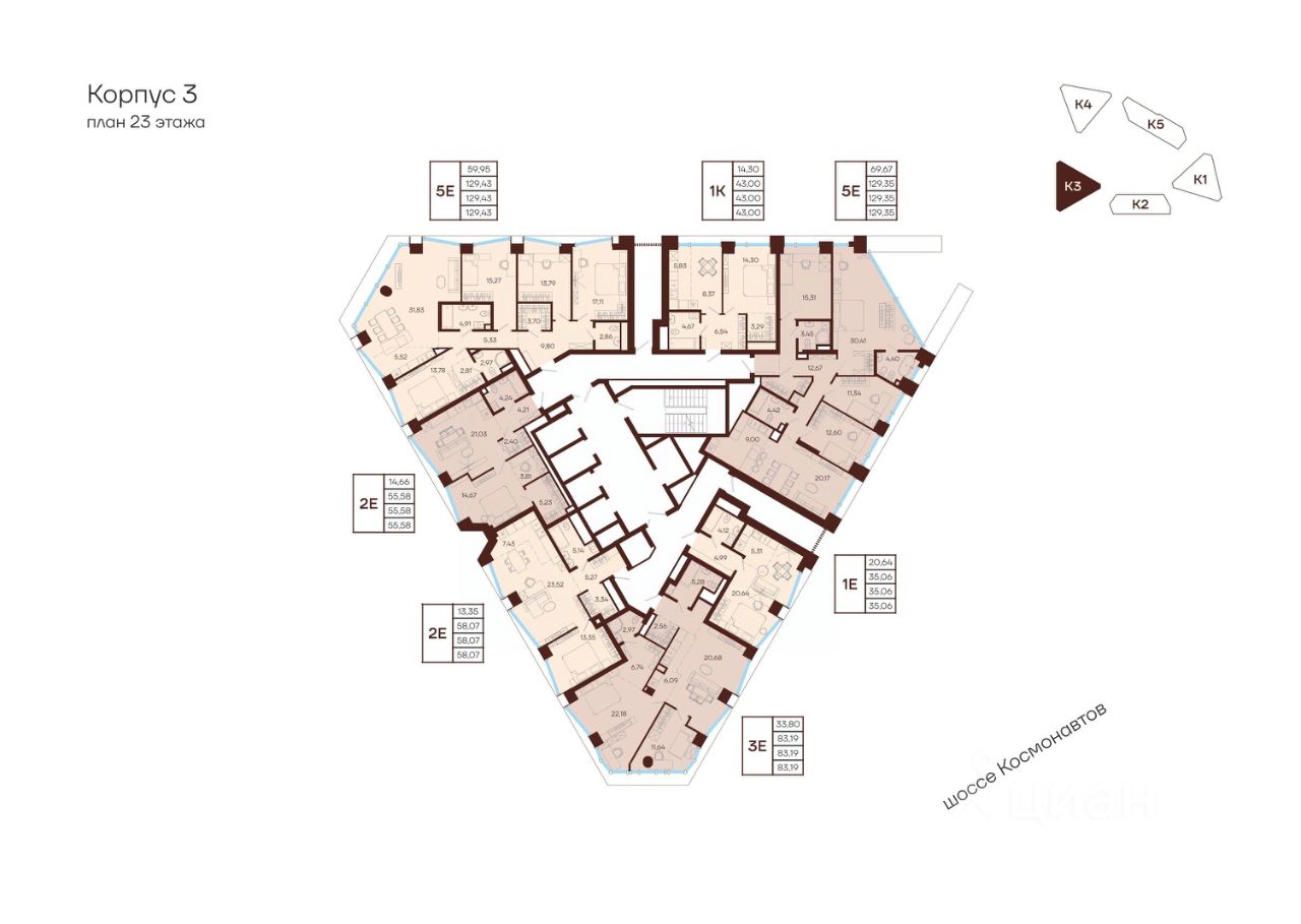 Продаётся 5-комнатная квартира в строящемся доме (К2), срок сдачи: I-кв. 2030, общей площадью 129.43 кв.м., на 23 этаже. Новый жилой комплекс "МАНЕРЫ" от Специализированного застройщика "УНО" расположен по адресу: г. Пермь, по ул. шоссе Космонавтов.