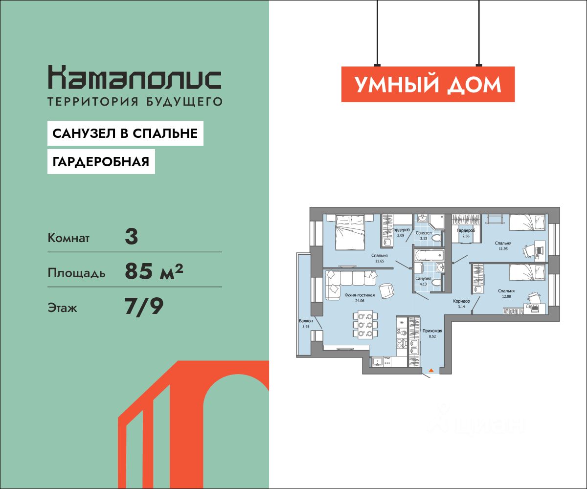 В новом жилом комплексе комфорт+ класса "Камаполис", расположенном на берегу реки Камы, продается 3-комнатная квартира площадью 85.00 кв. м. Квартира находится в 4 доме. Девелопер проекта - "Железно".