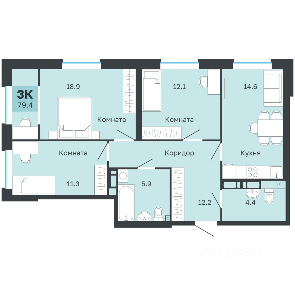 Общая площадь79,4 м²