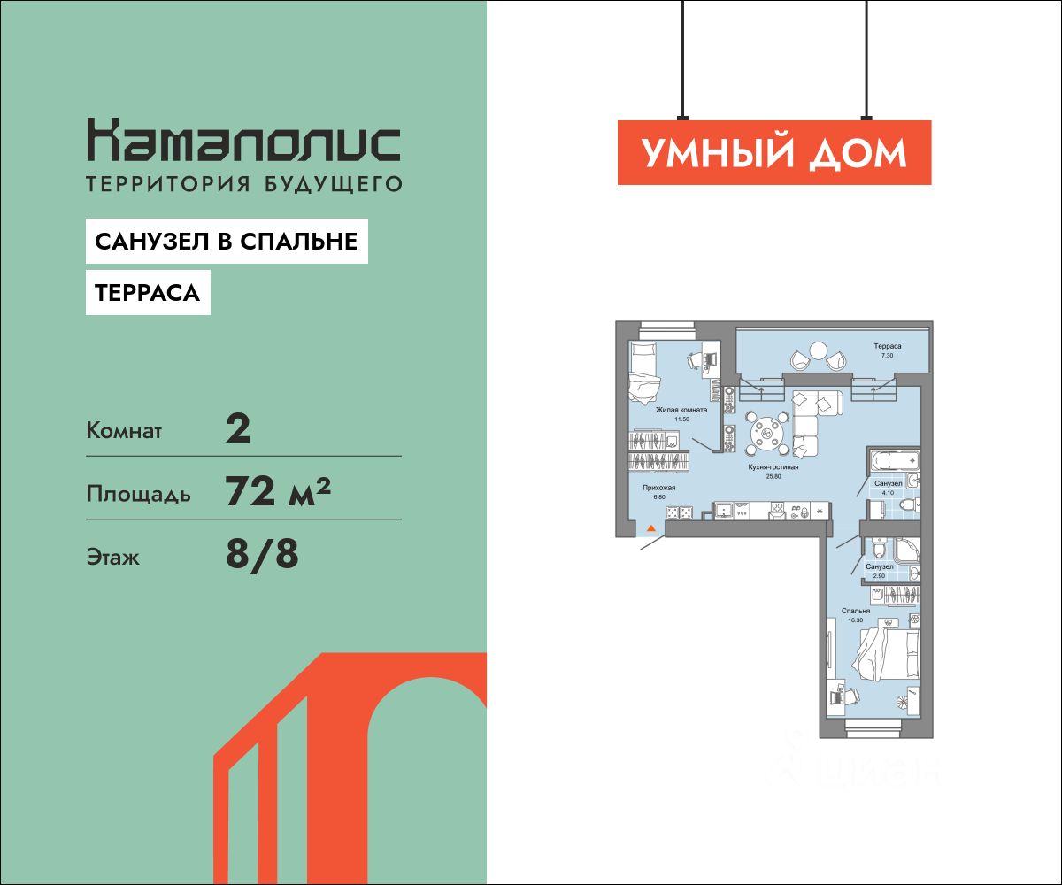 В новом жилом комплексе комфорт+ класса "Камаполис", расположенном на берегу реки Камы, продается 2-комнатная квартира площадью 72.00 кв. м. с предчистовой отделкой. Квартира находится в 3 доме. Девелопер проекта - "Железно".