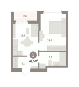 1-комн. квартира от застройщика с предчистовой отделкой в ЖК "Квартал "Юность"" на 8 этаже. Общая площадь: 41.48 кв.м. Высота потолков 2.7 м.