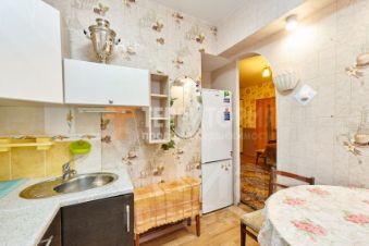По всей квартире натяжной потолок, на полу по всей квартире линолеум, стеклопакеты, рабочая зона на кухне в кафельной плитке, сан узел обшит панелями, новые межкомнатные двери. Балкон застеклен.
