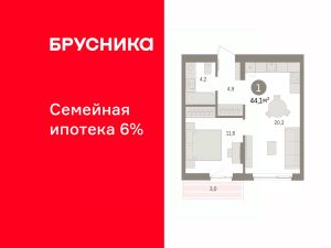 Продается 1-комн. квартира от застройщика с предчистовой отделкой в ЖК "Квартал "Юность"" на 5 этаже. Общая площадь: 44.05 кв.м. Высота потолков 2.7 м.