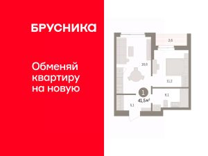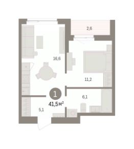 1-комн. квартира от застройщика с предчистовой отделкой в ЖК "Квартал "Юность"" на 4 этаже. Общая площадь: 41.5 кв.м. Высота потолков 2.7 м.
