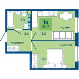 Общая площадь34,7 м²