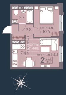 Общая площадь квартиры — 35,7 кв. м, жилая — 20,9 кв. м, площадь кухни — 7,4 кв. м. Высота потолков — 2,57 м. Две изолированные комнаты с окнами на улицу создадут комфортное пространство для жизни. Чистовая отделка позволяет сразу заселиться или реализовать свои дизайнерские идеи.