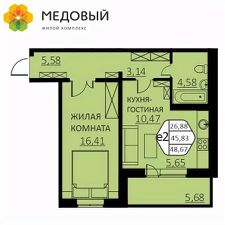 Общая площадь45,7 м²