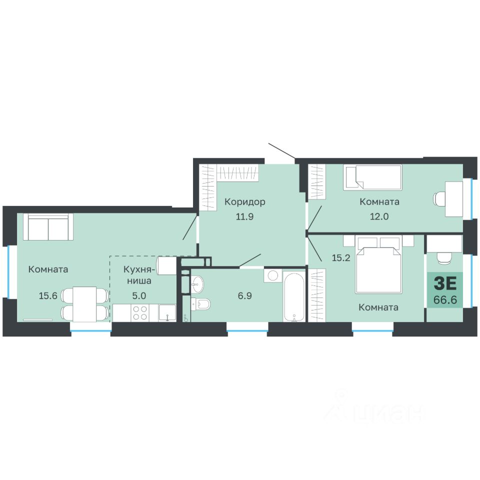 Общая площадь66,6 м²