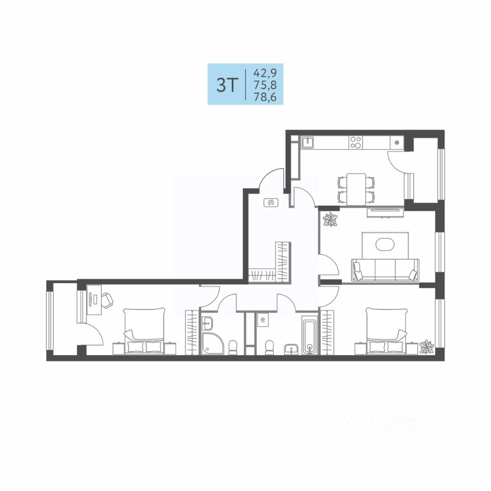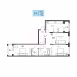 Общая площадь78,6 м²