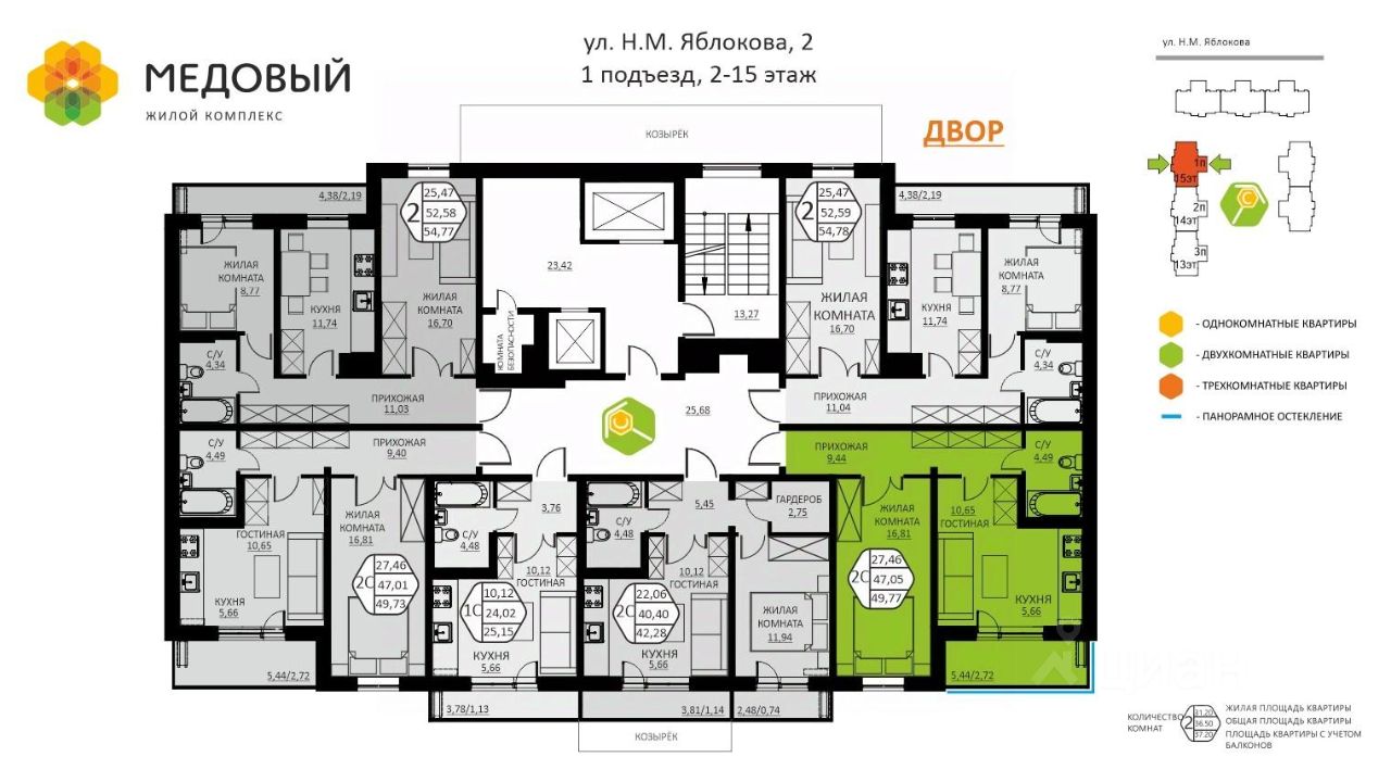 ЖК Медовый - современный жилой комплекс в экологически чистом районе Новое Кондратово, всего в нескольких шагах от мкр. Парковый. Наслаждайтесь живописными видами на реку Мулянку и Черняевский лес прямо из своего окна!