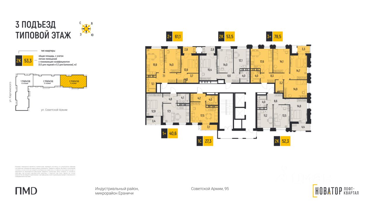 В доме 3 подъезда комфортной средней этажности 11-12 этажей