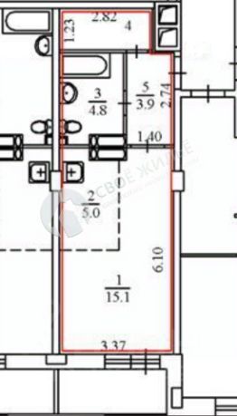 Квартира состоит из гостиной с кухней, коридора, санузла, гардеробной и лоджии с потрясающим видом на Комсомольскую площадь.