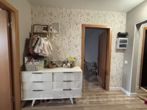 В квартире остаётся часть мебели: вешалка в прихожей, туалетный столик в спальне, тумба с раковиной и зеркало в ванной, кухня с раковиной и двумя кранами, один из которых с фильтром для воды.