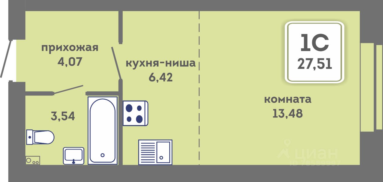 Общая площадь27,51 м²