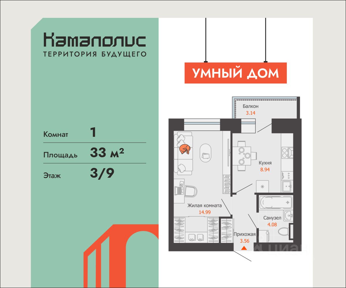 В новом жилом комплексе комфорт+ класса "Камаполис", расположенном на берегу реки Камы, продается 1-комнатная квартира площадью 33.00 кв. м. Квартира находится в 5 (1 этап) доме. Девелопер проекта - "Железно".