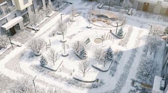 Новый центр притяжения - всесезонный сквер, выполненный в тематике и стилистике пермского периода. Прогулочные зоны, игровые и спортивные площадки, релакс-зоны и места для творчества - все эти мультифункциональные пространства формируют сценарии для любого досуга.