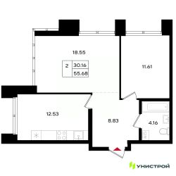 Общая площадь55,68 м²