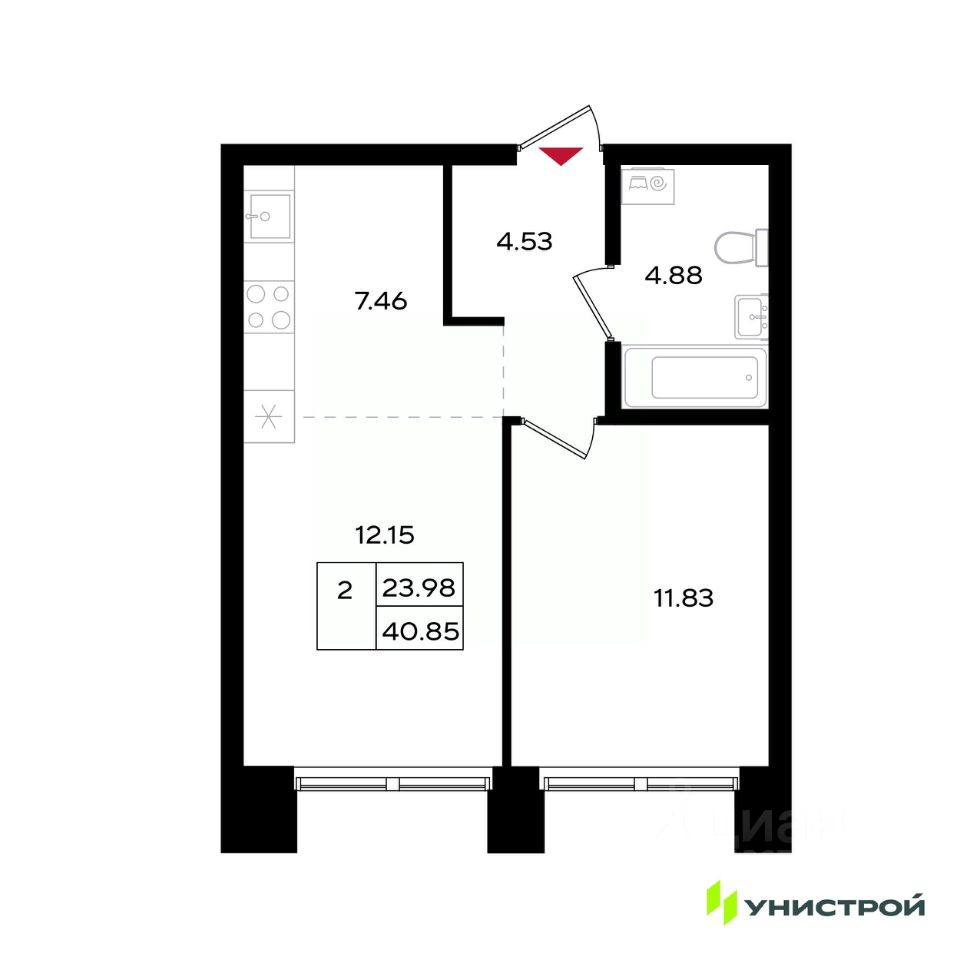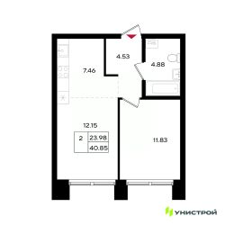 Общая площадь40,85 м²